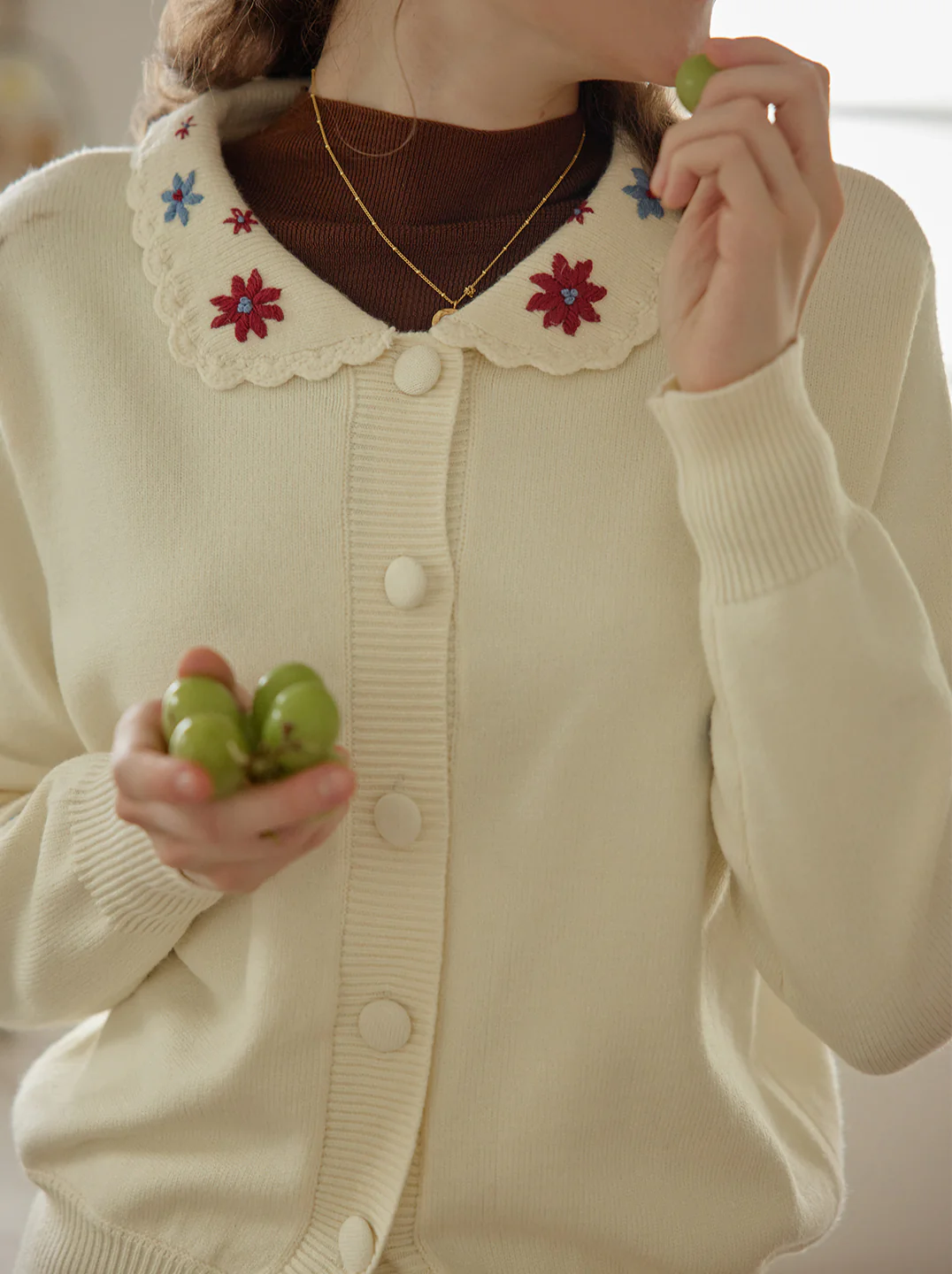 【Final Sale】Grace Floral Embroidered Apricot Knit Cardigan