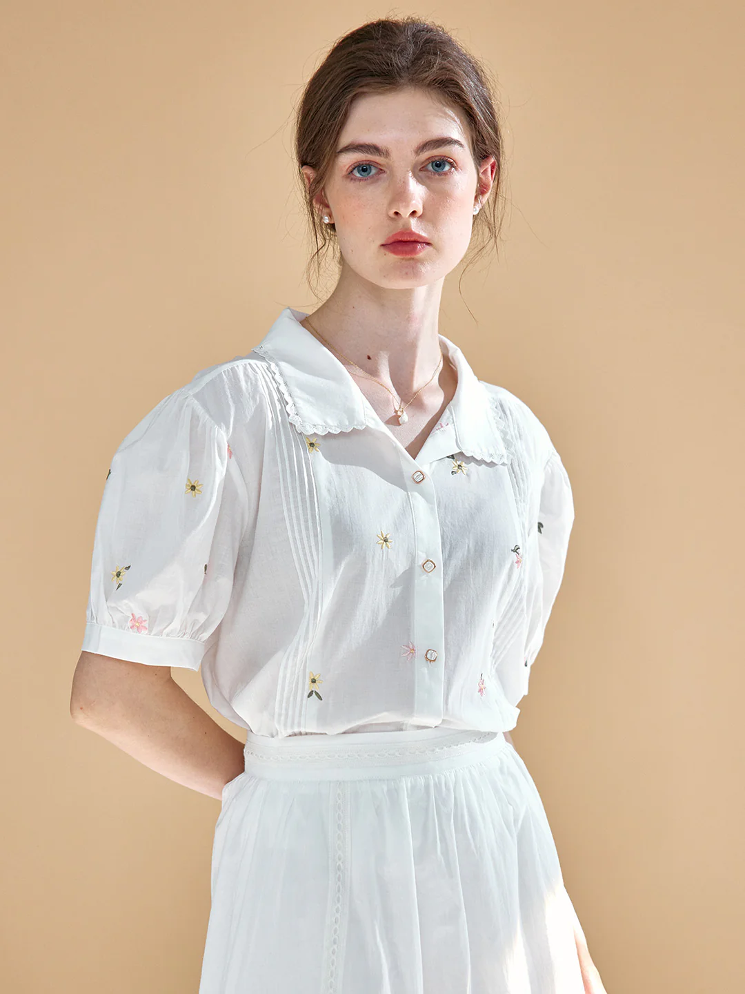 【Final Sale】Savanna Simple Little Daisy Embroidered White Blouse